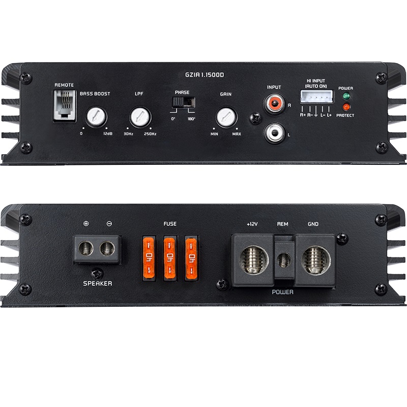 1-Kanal Subwoofer-Verstärker mit Class D Schaltung, integrierter Aktivweiche und schwarz eloxiertem Kühlkörper