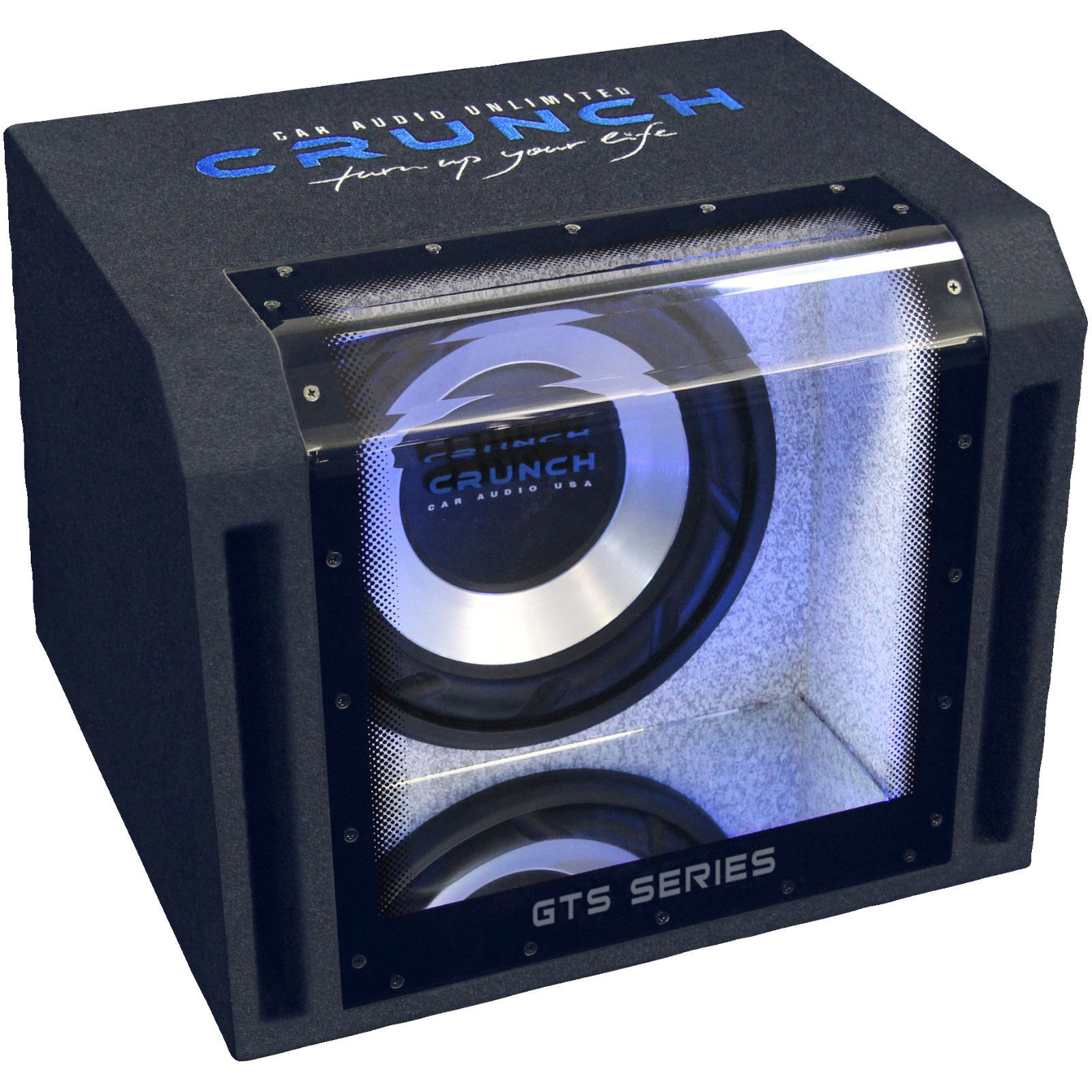 Die Bandpass Systeme der GTS Serie zeichnen sich besonders durch die hochwertige Verarbeitung und Qualität im Detail aus. Ie sind mit sehr wirkungsgradstarken Tieftönern mit stabiler Profilsicke ausgestattet, die eine sehr gute und tiefe Basswiedergabe liefern. Ein feiner Teppichbezug mit edlem zweifarbigen Logo-Stick, verspiegelte Innenkammern mit blauer LED-Beleuchtung und große, gekantete Acrylfenster runden das harmonische Gesamtbild ab.